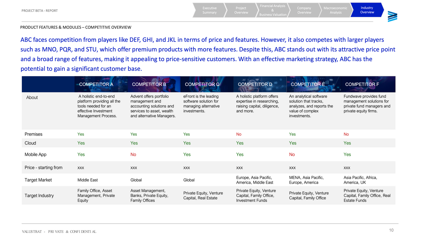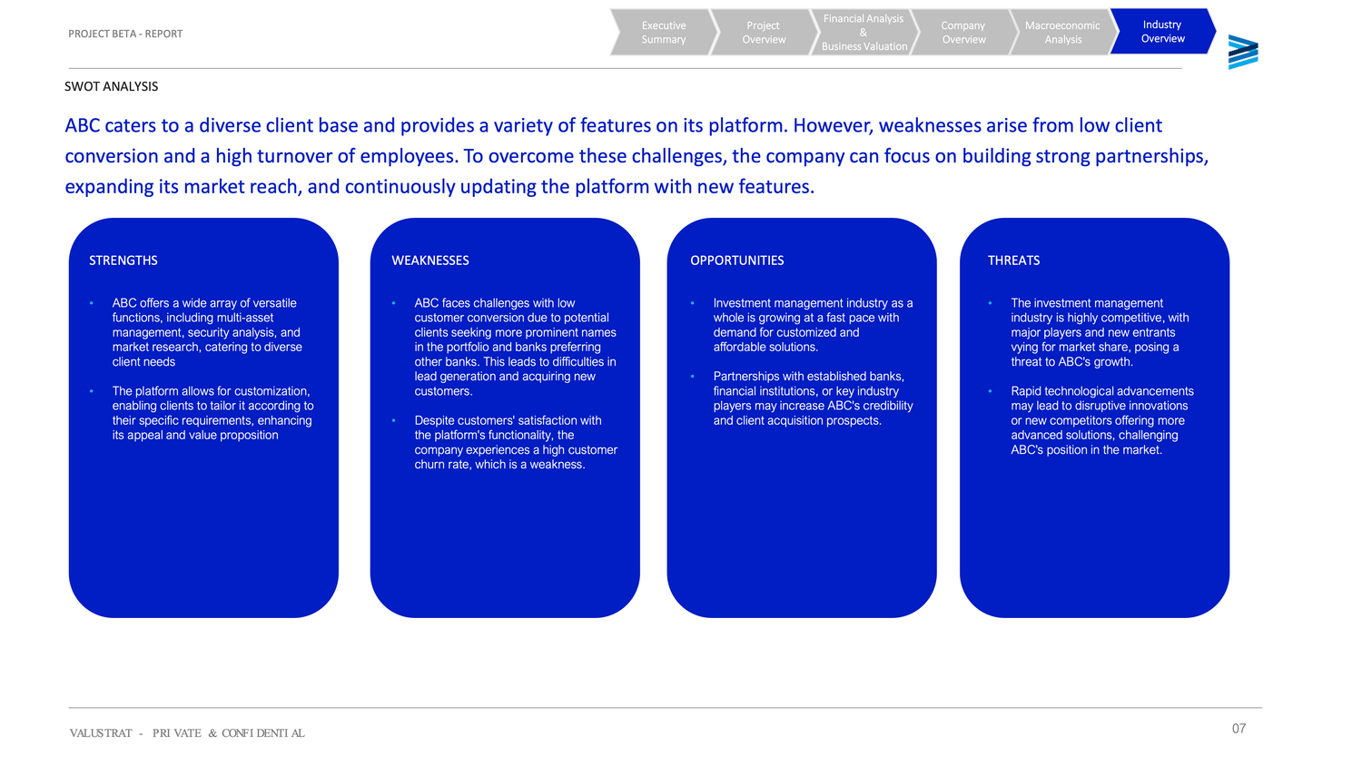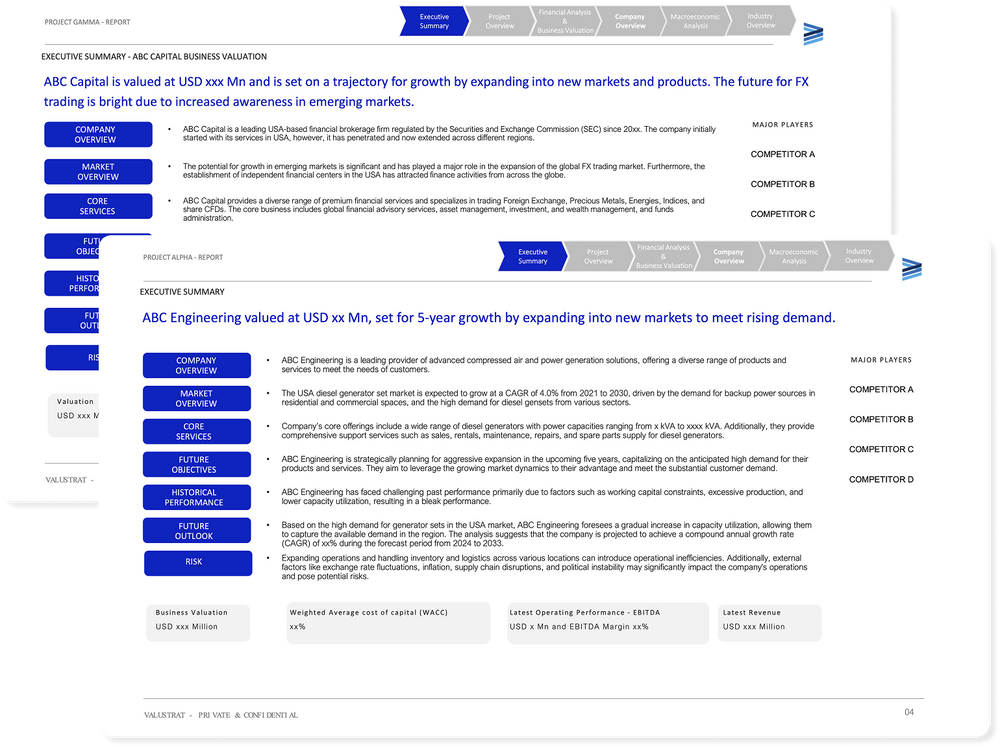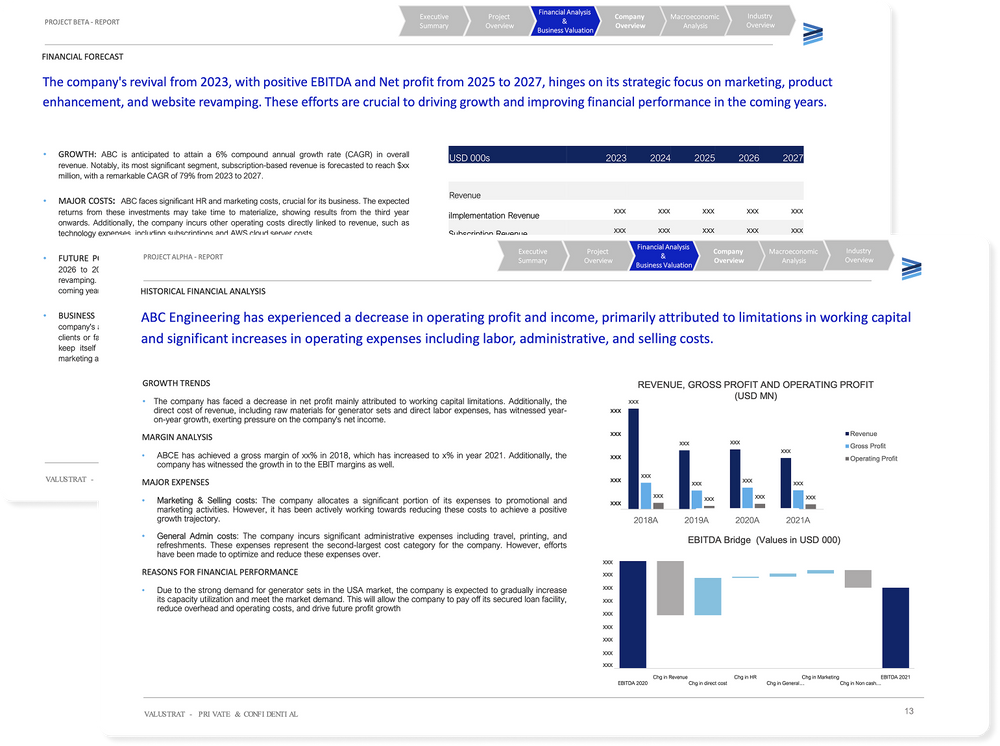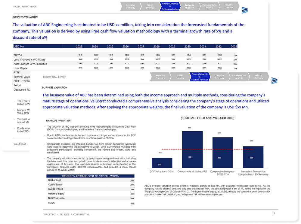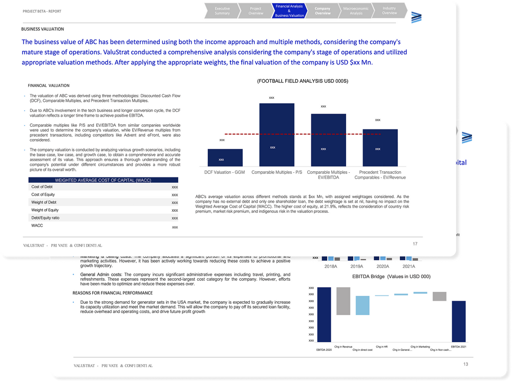 Our reports can be used for investment analysis, transactions, financial reporting, investor pitches, partnership agreements, and other key decisions.
